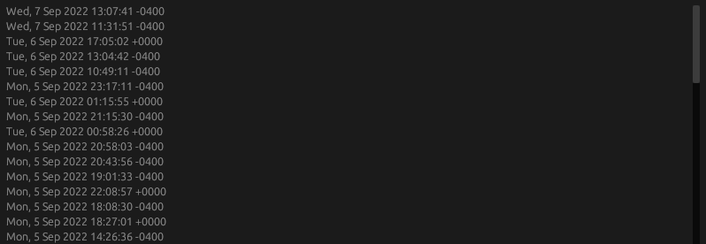 If you list the commit hashes or dates, then you will see a list of all the commit hashes or dates in the repository.